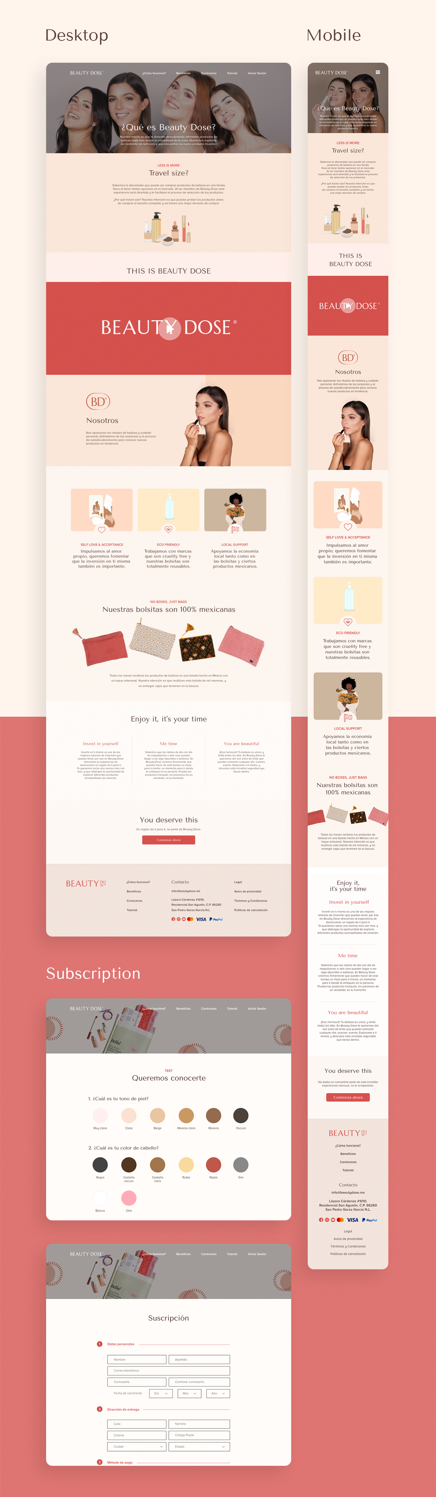 Beauty Dose is a monthly beauty subscription brand that partners with Mexican cosmetic companies to deliver curated skincare and makeup products. The brand offers an experience focused on discovery, self-care, and supporting local manufacturers.